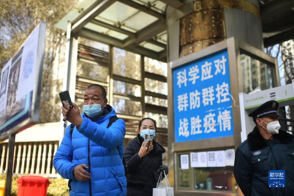 11月20日,西宁市一小区居民在进入小区前扫码登记。