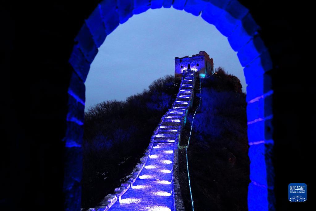 11月20日,北京司马台长城为世界儿童日亮灯。