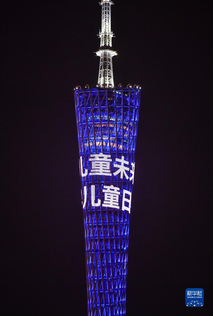 11月20日,广州塔为世界儿童日亮灯。