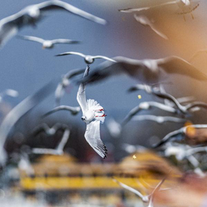 当日,春城昆明天气晴好。在滇池海埂大坝,成群的红嘴鸥时而盘旋、时而嬉戏。