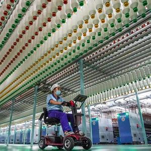 纺织工人在江苏大生集团有限公司数字化纺纱车间内作业(10月26日摄)。