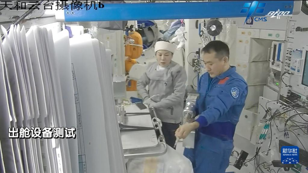 这是中国载人航天官方网站视频截图,航天员翟志刚、王亚平在进行出舱设备测试。