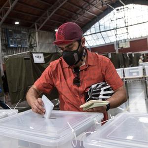11月21日,在智利蓬塔阿雷纳斯的一处投票站,左翼政党联盟“赞成尊严”联盟的总统候选人加夫列尔·博里奇参与投票。