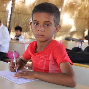 这所学校的大部分教室在战乱中被炸毁,200多名学生只能在帐篷、茅草屋或木板房内上课。学校还面临着教学用品匮乏、师资配备不足等问题。