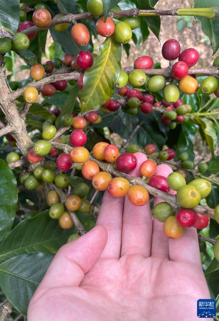 云南省普洱市林润咖啡庄园的咖啡果(11月4日摄)。