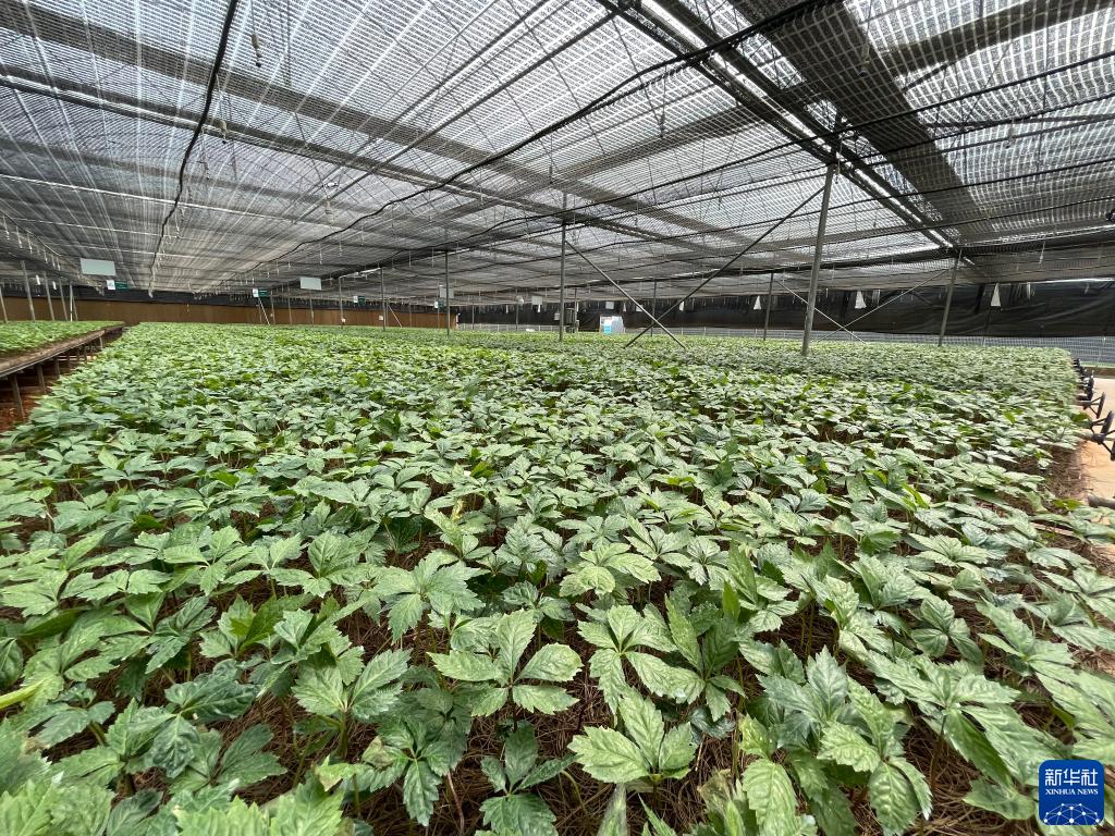 在位于云南省文山州的文山苗乡三七科技示范园内,三七苗在苗床上生长(8月2日摄)。