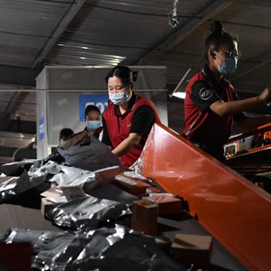 11月11日,在中国邮政集团有限公司河南省郑州邮区中心,工作人员在分拣快递包裹。