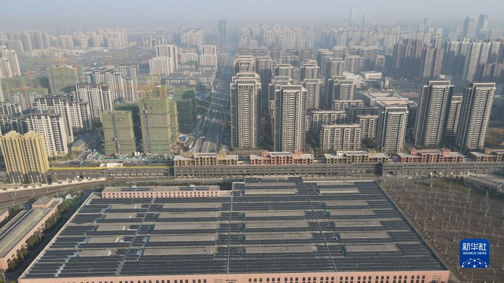 11月26日拍摄的合肥市轨道交通1号线珠江路车辆段运用库屋顶的分布式光伏发电站(无人机照片)。