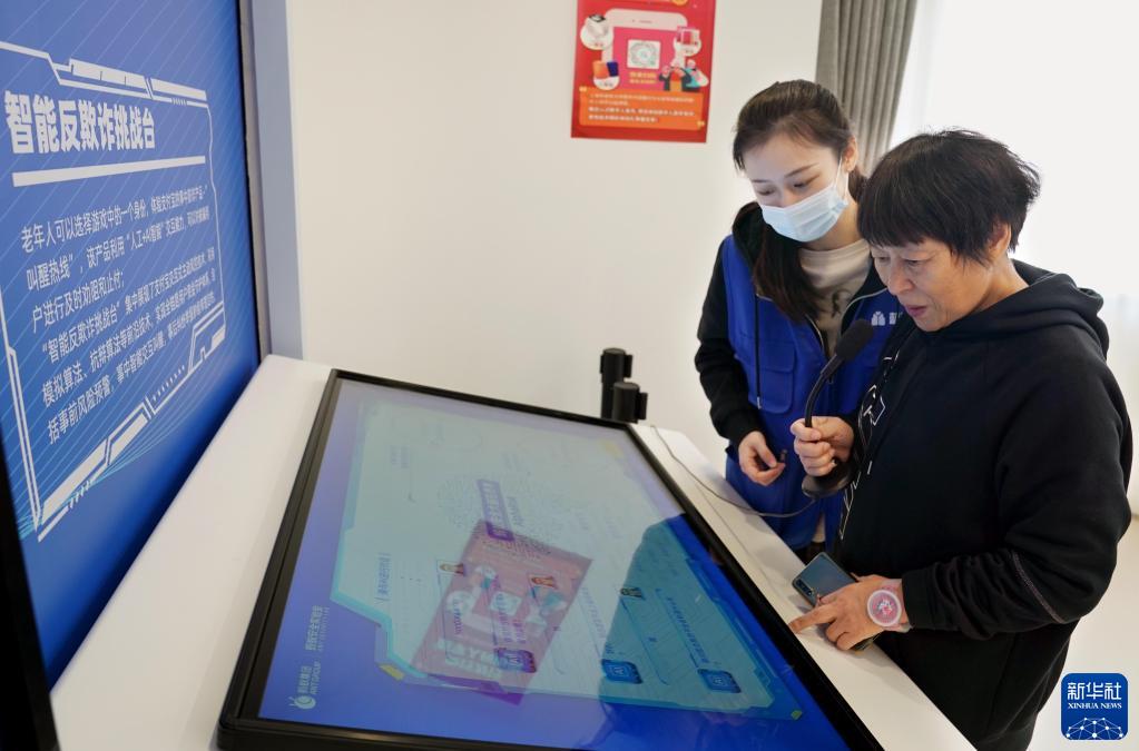 11月26日,在上海老年大学钦州书院“金融岛”教室,学员学习电子支付和反诈常识。