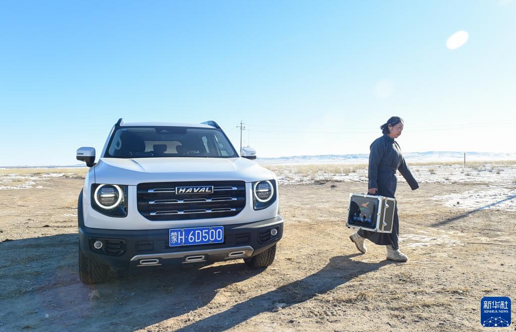 11月26日,锡林浩特市巴彦宝拉格苏木那仁宝拉格嘎查党员中心户塔娜驾车将书箱送往牧民乌仁高娃家。