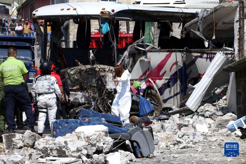 11月26日,在墨西哥中部墨西哥州霍奇辛戈,工作人员在事故现场忙碌。