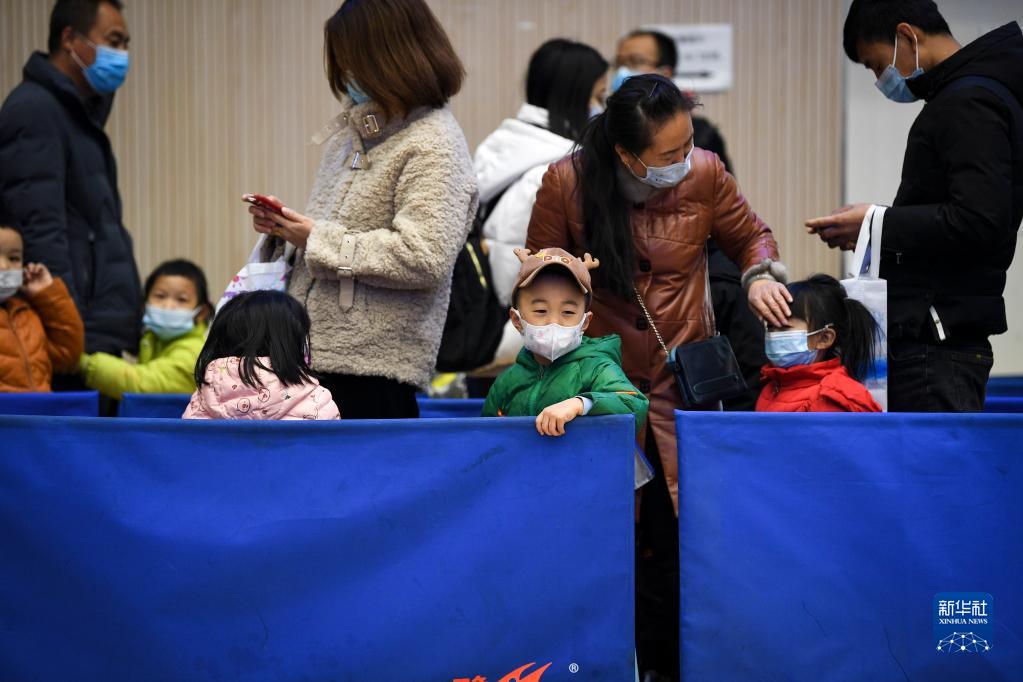11月27日,在银川市金凤区新冠疫苗方舱接种点,家长带着孩子等候接种疫苗。