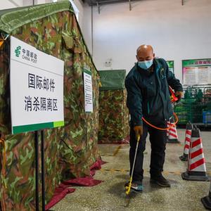 11月27日,中国邮政集团公司锡林郭勒分公司邮件处理中心工作人员对包裹进行消杀作业。