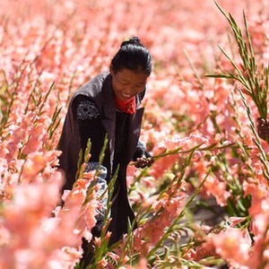 西藏拉萨市四季吉祥村村民在采摘雪菊(2017年9月27日摄)。