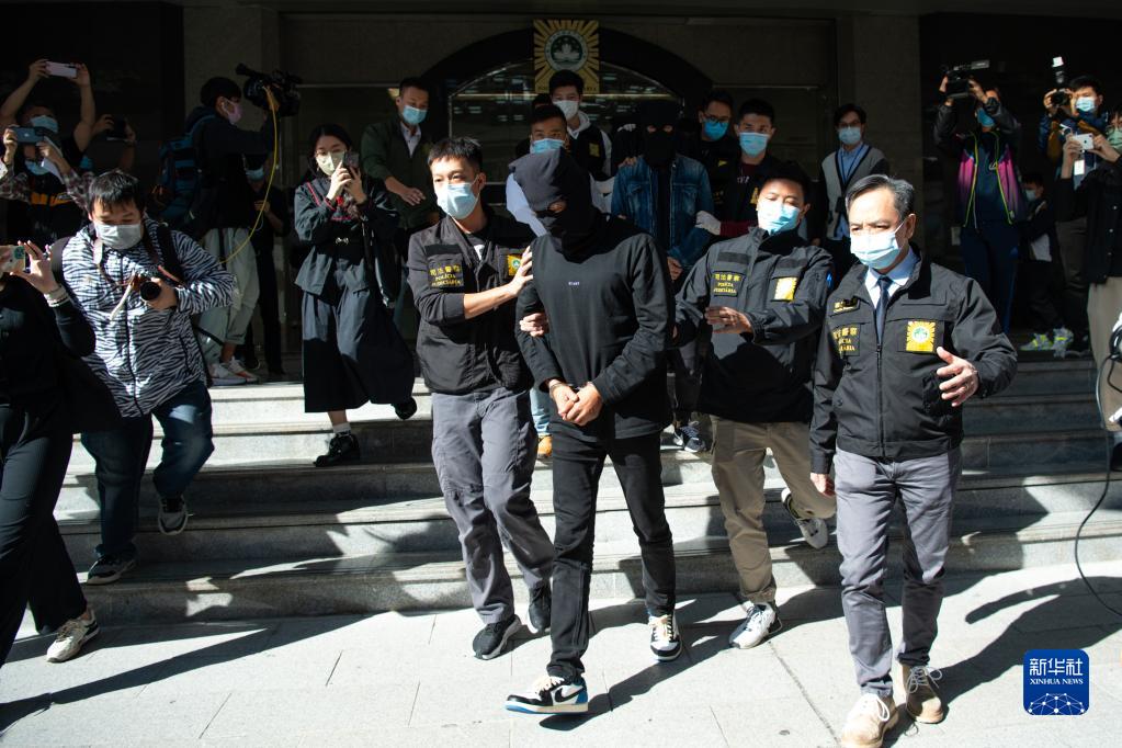 11月28日,澳门特区政府司法警察局人员押送一名嫌犯。