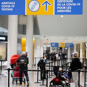 11月28日,在加拿大安大略省多伦多皮尔逊国际机场,戴口罩的入境旅客前往新冠病毒检测站。