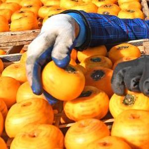 11月29日,村民在恭城瑶族自治县嘉会镇采摘月柿。
