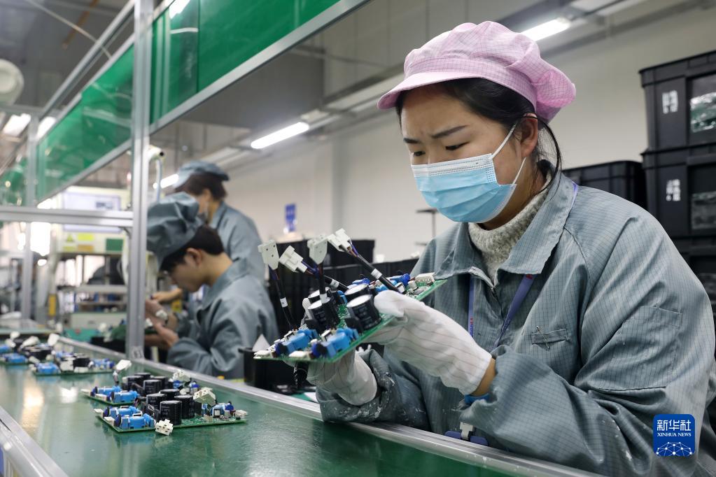 11月29日,在淮北市烈山经济开发区一家智能控制器生产企业,工人在车间内忙碌。