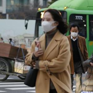 11月29日,佩戴口罩的市民在韩国首尔乘坐公交车。