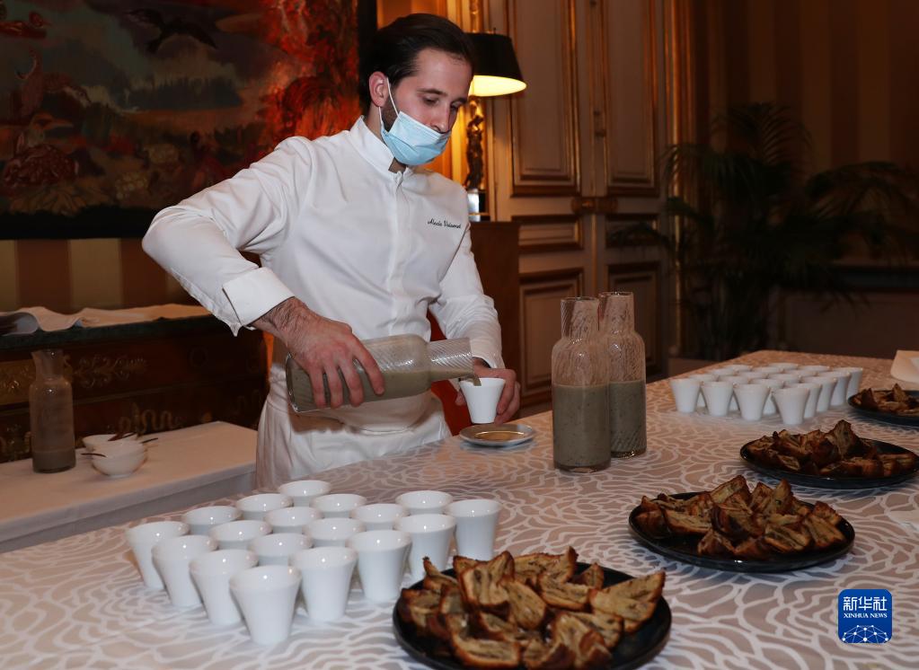 11月29日,在位于巴黎的法国外交部举行的LA LISTE国际美食榜单揭晓活动现场,大厨为来宾准备美食。