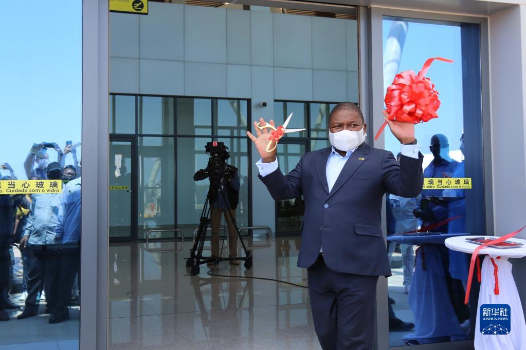 11月29日,在莫桑比克加扎省机场,莫桑比克总统纽西在启用仪式上剪彩。