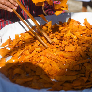 据了解,赵家镇泉畈村番薯种植面积达到1000多亩,每到冬季,村民们都会变着花样制作番薯美食,其中传统番薯片是当地广受欢迎的“口袋零食”。近年来,赵家镇泉畈村依托合作社把传统番薯片打造成乡村旅游特色美食,探索发展一条“旅游+电商+农土特产”新路径,把农家美食成功销售至全国各地。