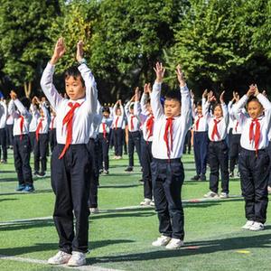当日,广西南宁市滨湖路小学举行体育文化节开幕式,文化节期间将开展团体操展示、运动竞技比赛等丰富多彩的活动,让孩子们走出教室、感受阳光,尽享运动乐趣。