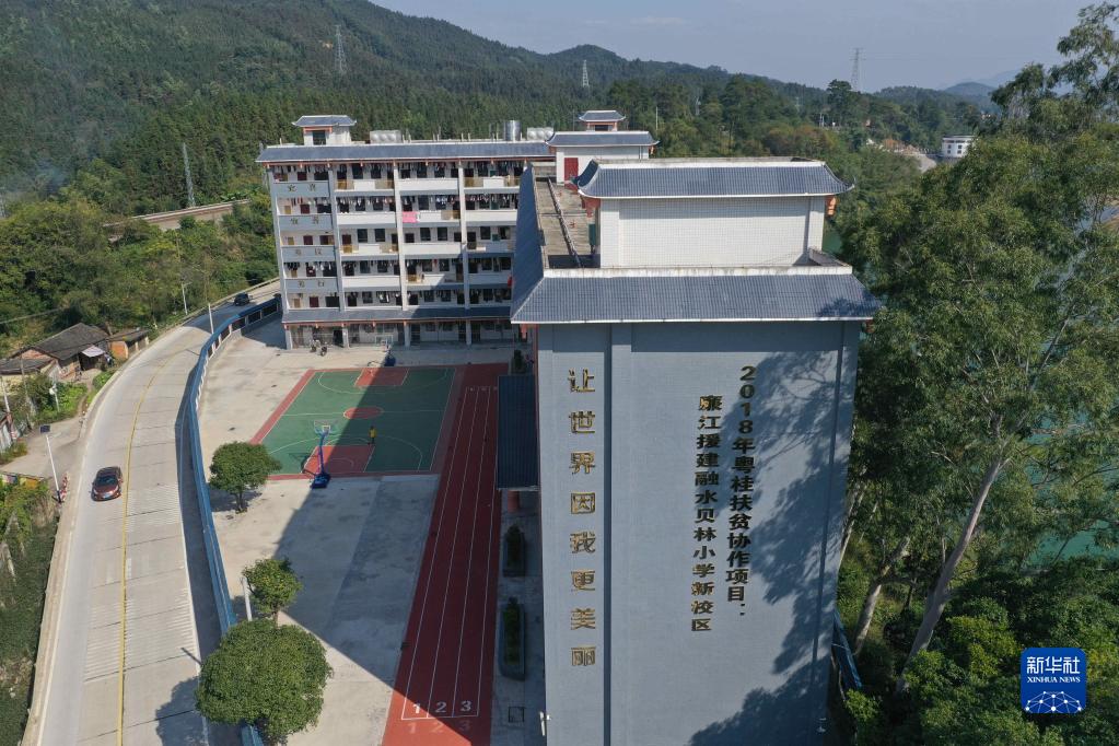 这是广东省廉江市援建的广西融水苗族自治县贝林小学新校区(无人机照片,11月28日摄)。