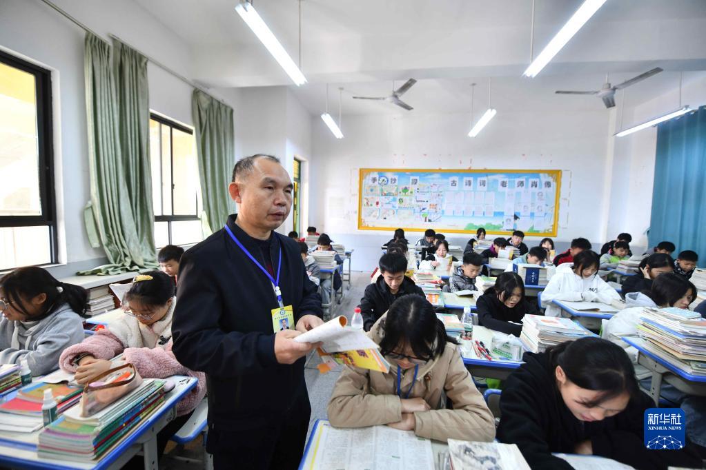 在广西融水苗族自治县思源实验学校,来自廉江市安铺镇第三中学的支教老师方周在上课(12月1日摄)。