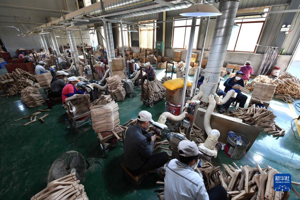 在广西融水苗族自治县粤桂扶贫协作产业园一家木业公司的扶贫车间,工人在生产线上作业(12月1日摄)。