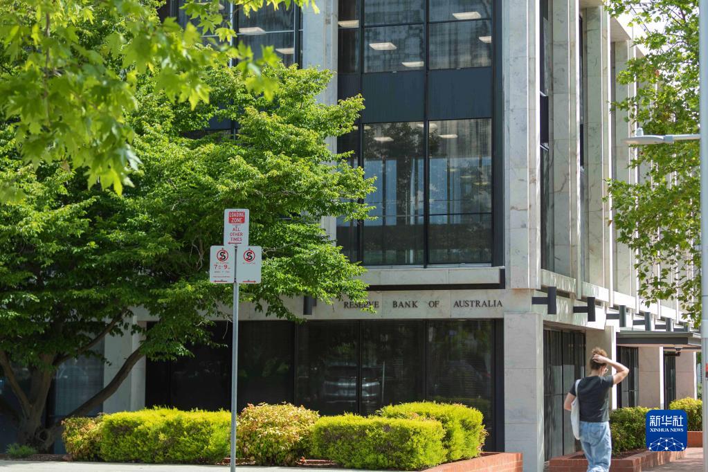 12月1日,一名女士走过澳大利亚首都堪培拉的澳大利亚储备银行办公楼。