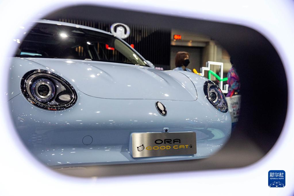 这是12月1日在泰国曼谷举行的第38届泰国国际车展上拍摄的欧拉好猫电动车。