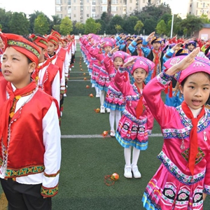 当日,广西南宁市玉兰路小学举行庆祝建校五周年活动。孩子们敲响铜鼓,唱歌跳舞,以充满青春气息的方式,表达与学校共同成长的快乐。