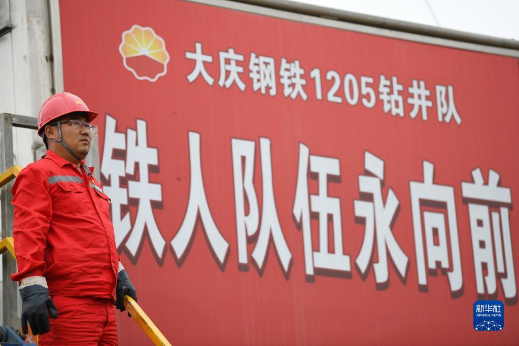 2019年6月27日,大庆油田1205钻井队队长张晶在钻井平台上望着远方。