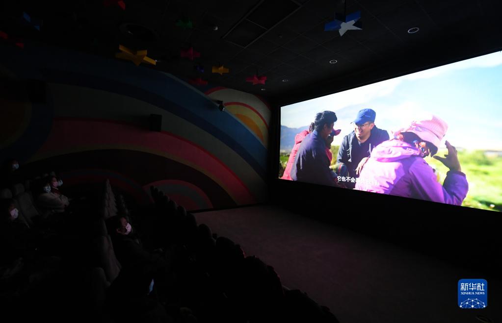12月3日,在北京天幕新彩云影城,海淀区花园路街道的工作人员观看电影《我们是第一书记》。