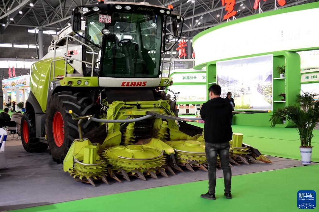 12月3日,参观者在2021安徽秸秆暨畜禽养殖废弃物综合利用产业博览会上了解一款农业机械。