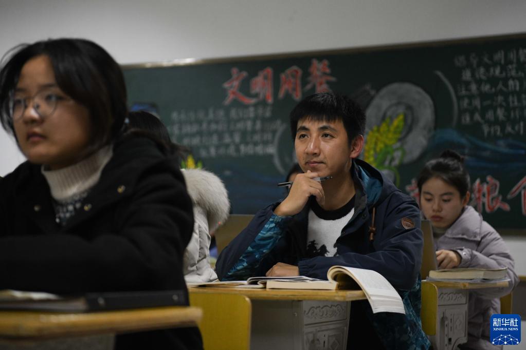 12月1日,唐闻泽(中)在安庆师范大学上课。