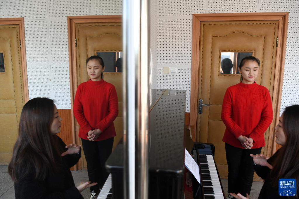 12月1日,在安庆师范大学音乐学院,张晨与老师在琴房内交流。