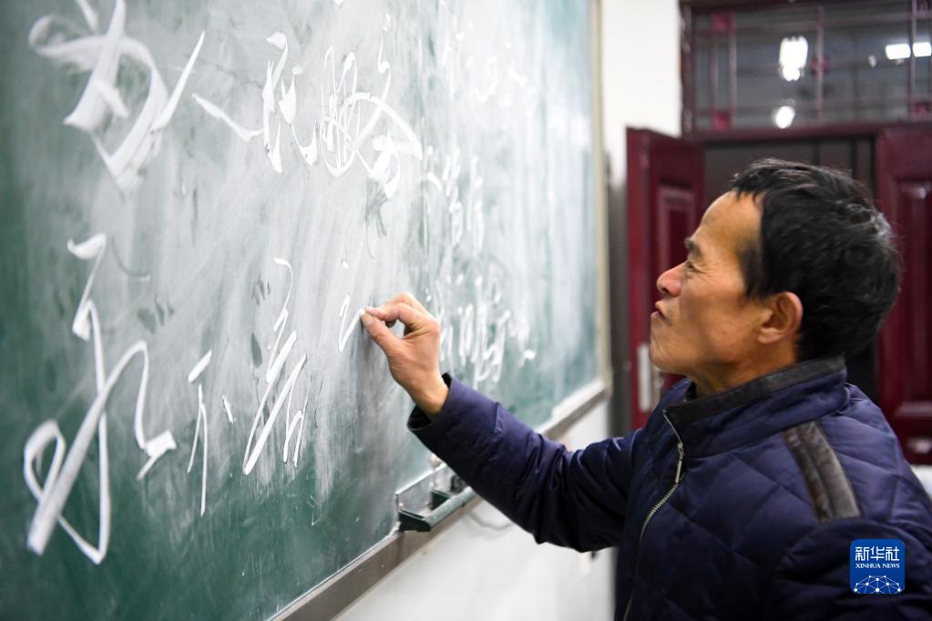 12月2日,卢文建在学生放学后练习板书,确保课堂上书写规范。