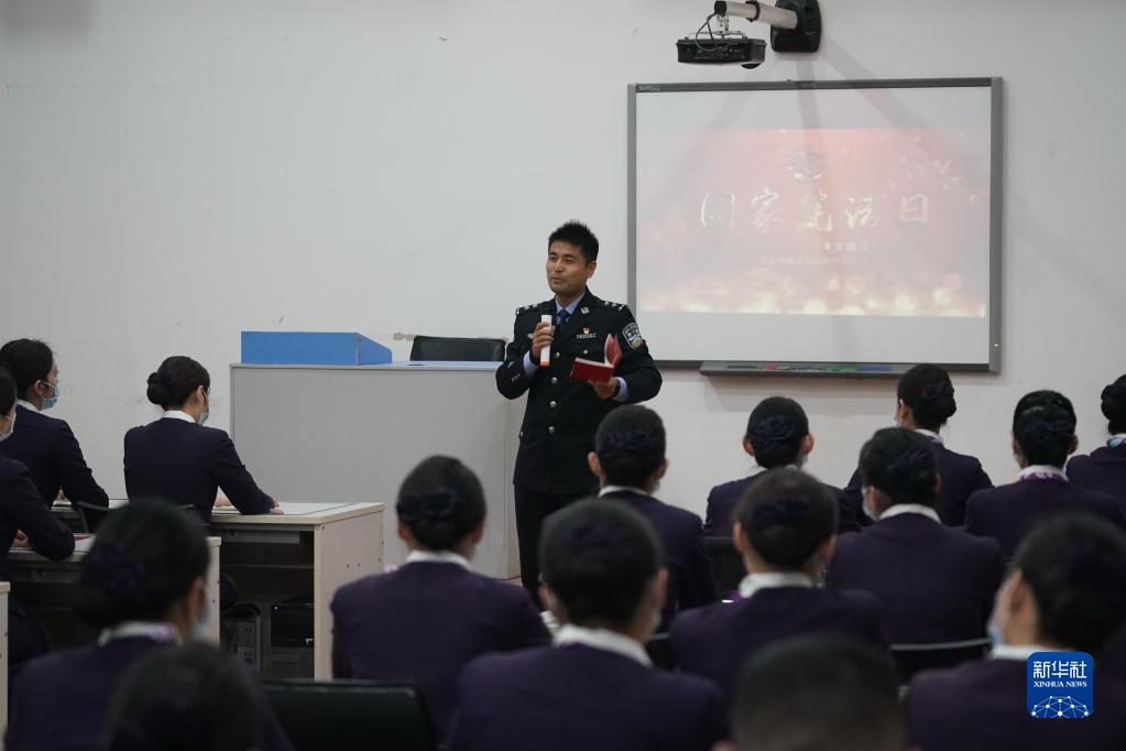 当日,南京铁路公安处乘警支队民警来到中国铁路上海局集团有限公司南京客运段,开展宪法宣传活动,迎接国家宪法日的到来。