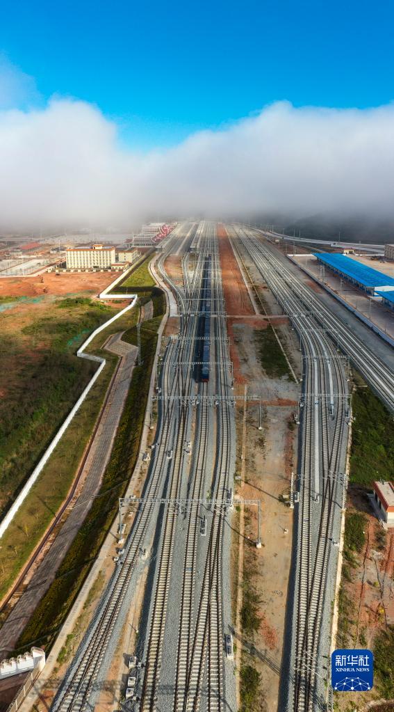 新华全媒+丨中老铁路首趟国际货物列车经磨憨铁路口岸前往老挝