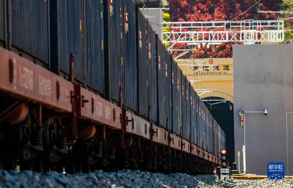 12月4日,货物列车驶入位于中老边境的友谊隧道。