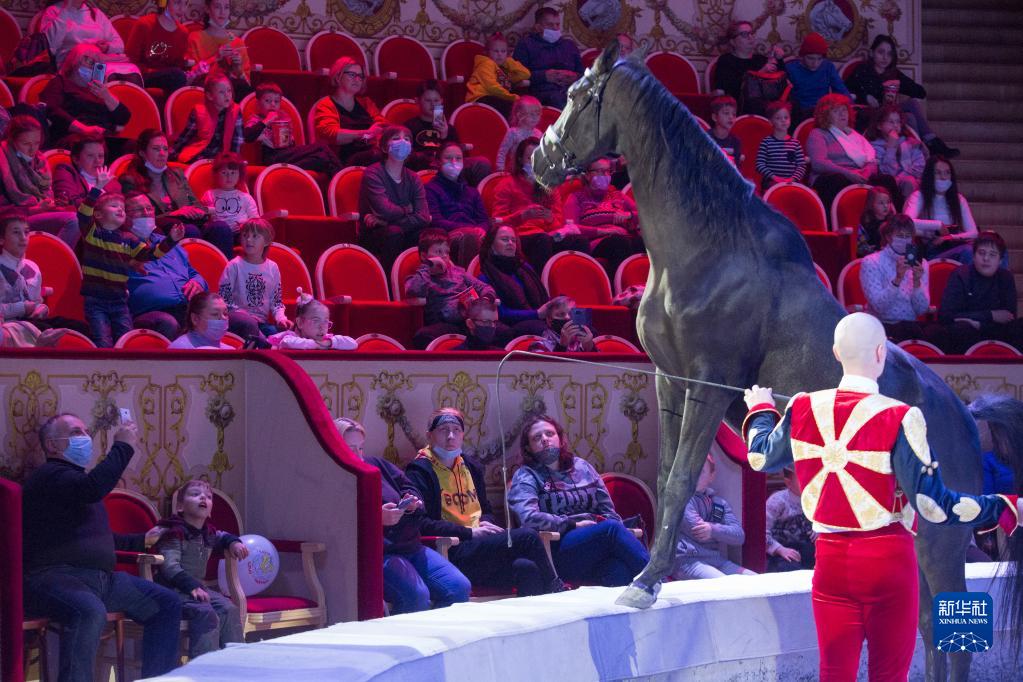 12月3日,观众在俄罗斯圣彼得堡国立大马戏院观看马戏表演。