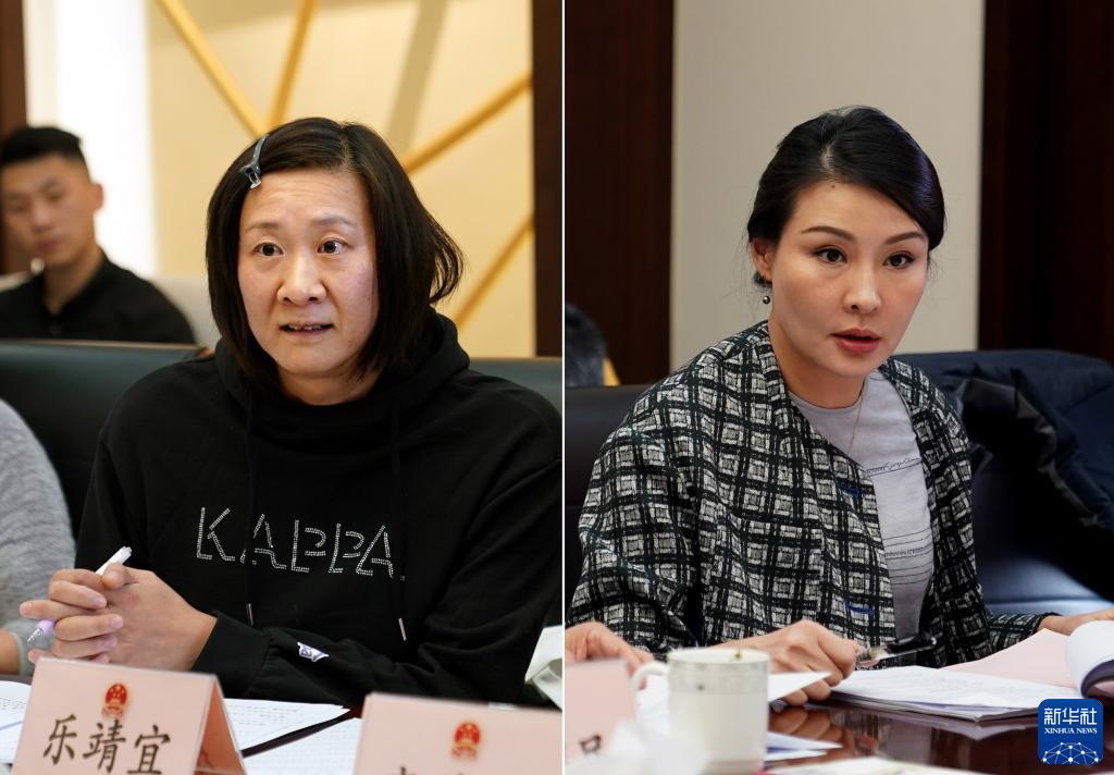 拼版照片:奥运冠军乐靖宜(左)、上海诸韵颖青少年体育俱乐部创始人诸韵颖(右)在意见征询会上提出建议(11月26日摄)。