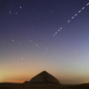 11月26日,在埃及首都开罗以南的弯曲金字塔上空拍摄的中国空间站过境照片(手机照片)。