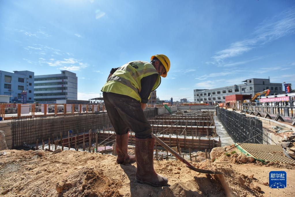 12月7日,施工人员在深圳地铁3号线四期工程坪地六联站工地作业。新华社记者 刘大伟 摄