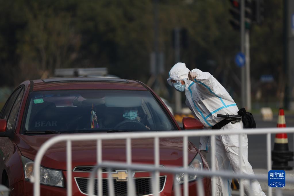 12月7日,在浙江省宁波市镇海区临江社区,工作人员引导社区居民按规定进出社区。