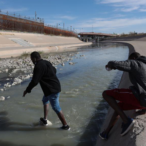 12月7日在墨西哥华雷斯城拍摄的照片显示,移民试图通过美墨边境的布拉沃河进入美国。