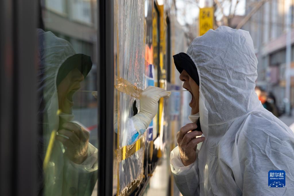 12月8日,在哈尔滨市南岗区西大直街上,市民在接受核酸采样。