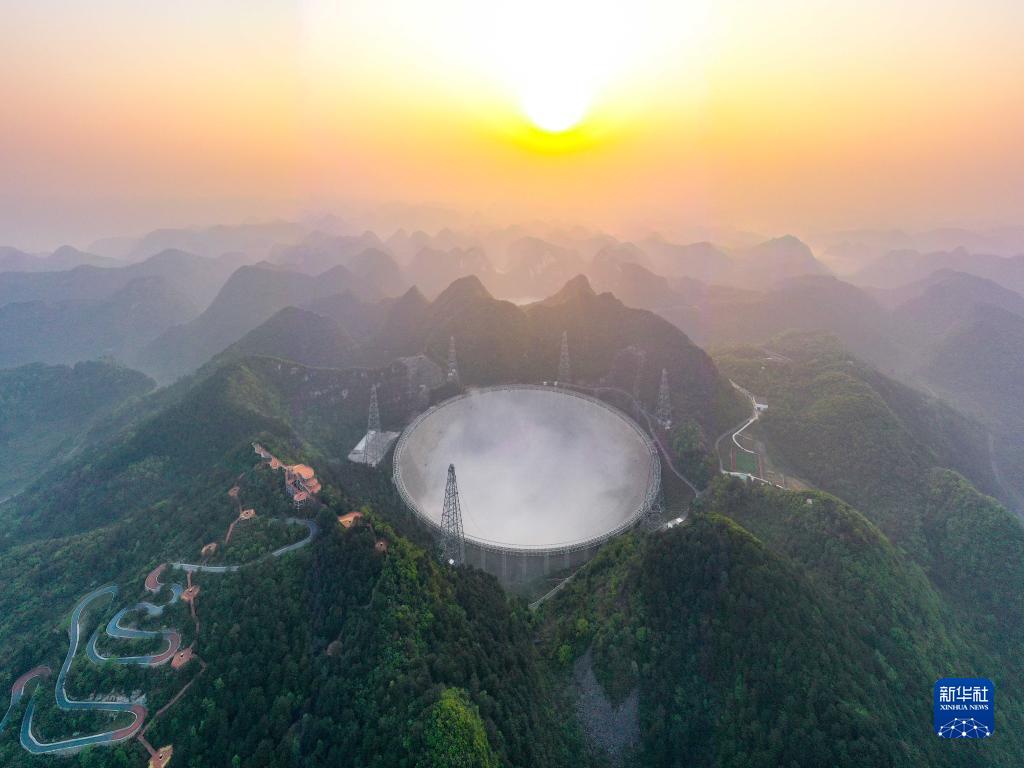 3月31日清晨拍摄的“中国天眼”全景(维护保养期间拍摄,无人机照片)。